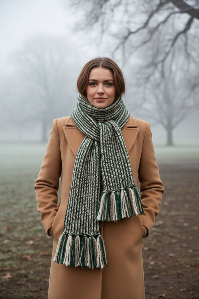 Extra Long, Extra Thick Striped Winter Scarf - 100% Wool